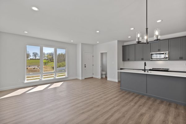 The 2-story Fairground townhome is a 3 bedroom, 2.5 bath floor plan with 1,474 sq. ft. of living space, a 2-car, oversized garage and a basement. The main floor features an open concept kitchen, dining and living room with 9’ ceilings and enlarged casement windows for additional natural light. There is also plank laminate flooring and a powder room on the main floor. The second floor features a large owner’s suite with walk-in closet, laundry room, two additional bedrooms and a shared hall bath.