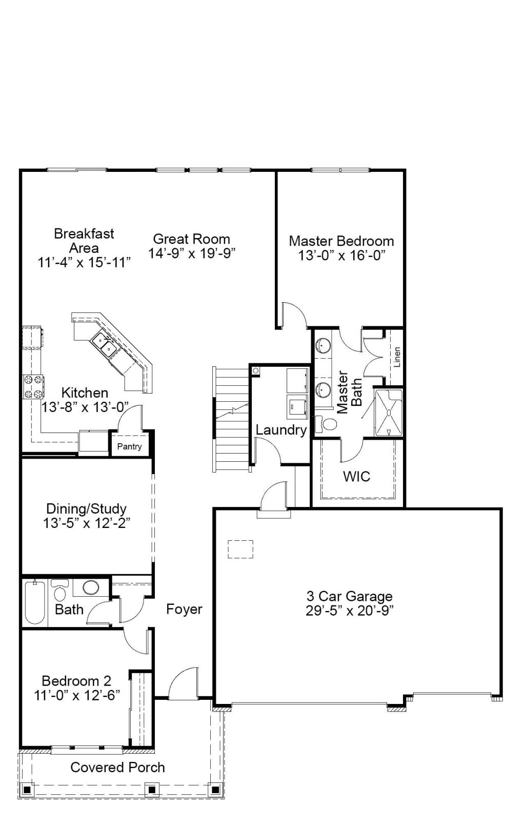 The Parker is 1.5 story home with an inviting exterior and large front porch on select elevations. This home features an open kitchen, breakfast area and living room, perfect for entertaining. Optional open dining room, study and powder room are available.